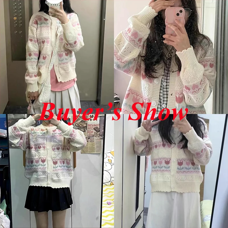 Rimocy Sweet Flower Knit Cardigan Women Autumn Winter Single Breasted Warm Sweaters For Woman Korean Style Long Sleeve Cardigans