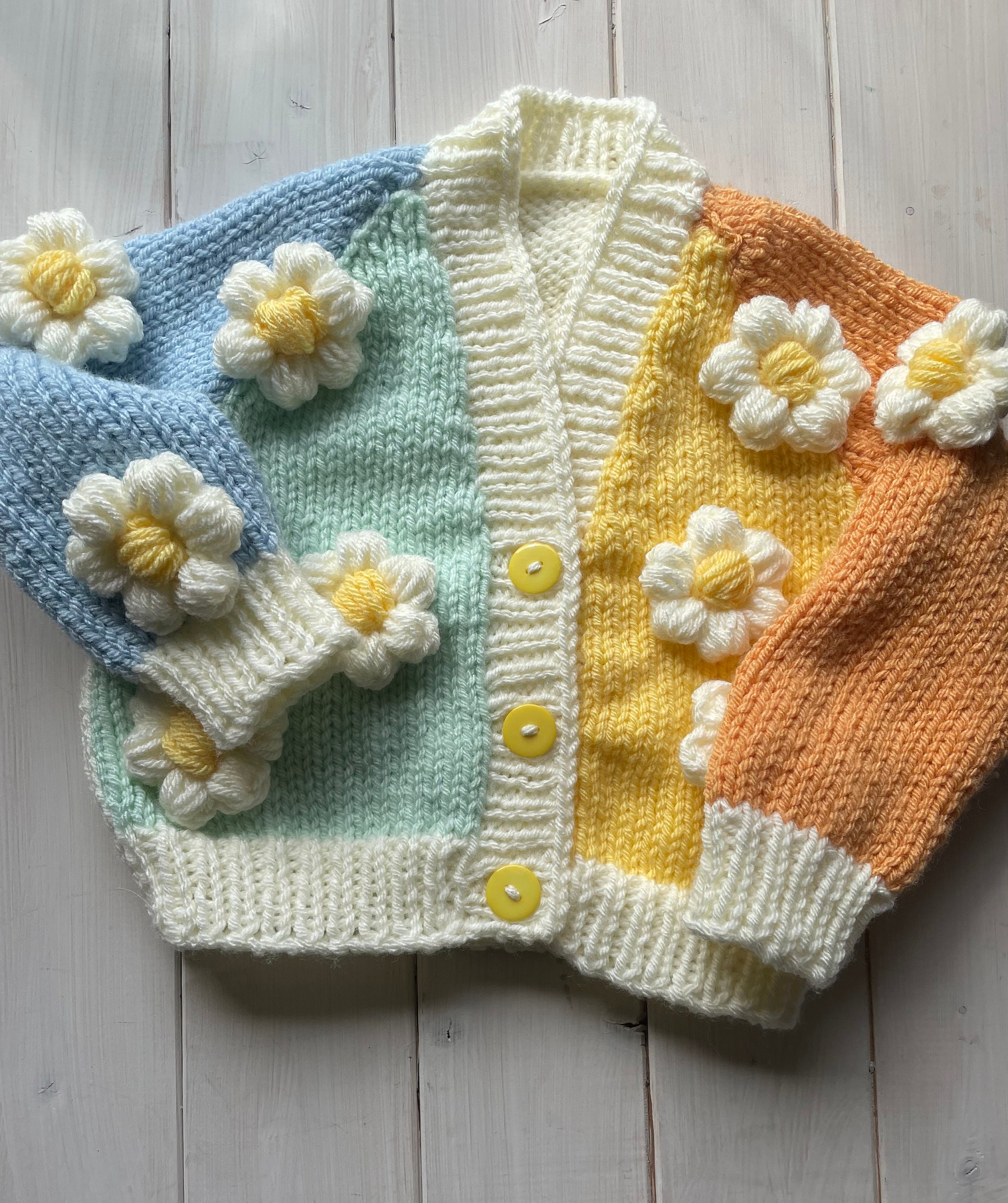Chunky Knitted Cardigan Flowers Etsy Uk